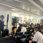 Harry Fisher (06) spoke about how his passion evolved into a successful career. He advised students to “say yes to a lot of things” and embrace every opportunity, no matter how small. Reflecting on his own journey, Fisher emphasised the lasting value of education, stating, “I have a commerce degree. It may not seem directly relevant to my work, but I use it every day. It gives me a skillset others don’t have and has been key to my success.”