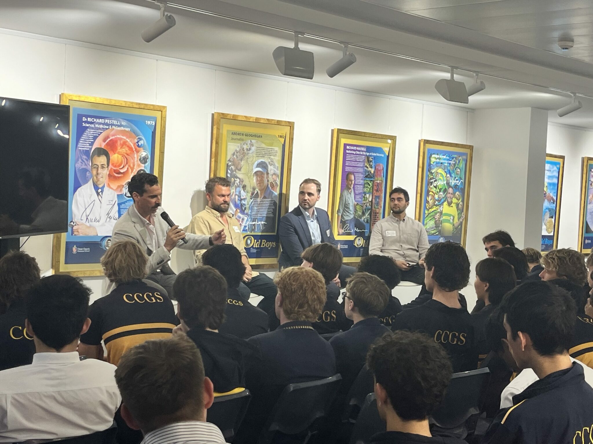 Harry Fisher (06) spoke about how his passion evolved into a successful career. He advised students to “say yes to a lot of things” and embrace every opportunity, no matter how small. Reflecting on his own journey, Fisher emphasised the lasting value of education, stating, “I have a commerce degree. It may not seem directly relevant to my work, but I use it every day. It gives me a skillset others don’t have and has been key to my success.”